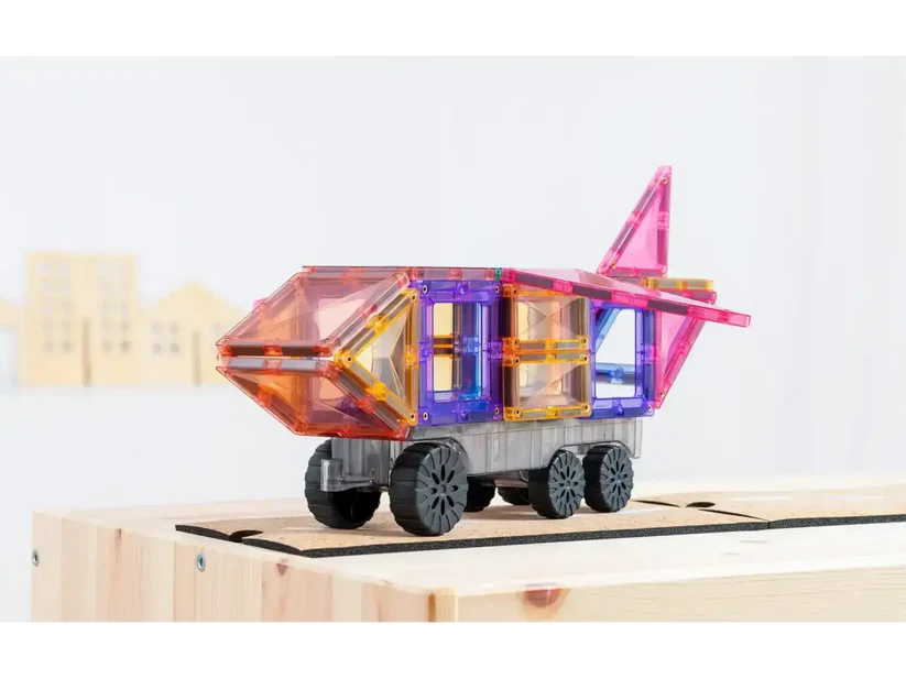 Discover STEAM learning as you navigate magnetism, shapes and colour to recreate your very own trucks and trains, aircrafts and ambulances, fire engines and forklifts. This pack can help children learn about engineering principles such as stability, balance, and symmetry all while engaging in imaginative play.