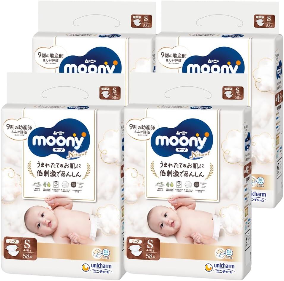 Moony - Nappies Natural Moony S 4-8kg 4 Packs 232pcs (S58*4)