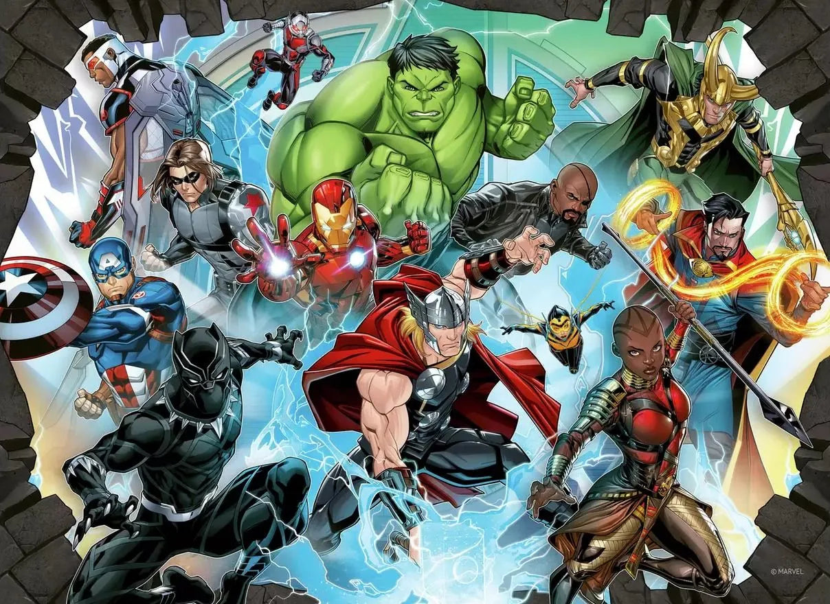 MARVEL AVENGERS TOYS - Piece together the pieces of this puzzle and hang out with Earth's Mightiest Heroes! * PLAYFUL DEVELOPMENT - Perfect toys for your child. Puzzles for kids of every age help support a childs development as they play, building skills such as concentration and creativity. * PREMIUM QUALITY - Ravensburger puzzles use an exclusive, extra-thick cardboard combined with fine linen structured paper to create a glare-free puzzle image and give you the best experience possible. Our 100 piece kids puzzles with XXL large pieces are crafted with premium quality materials and measure 49 x 36cm when complete. Great puzzles for Children 6 years old and up. Fully complies with all necessary UK and EU testing standards.