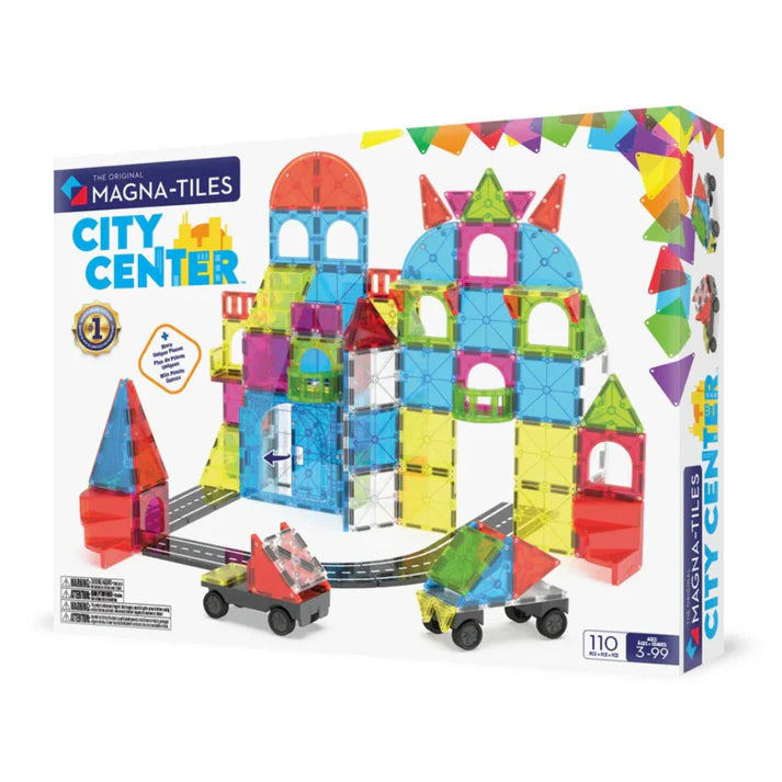 What Makes It Unique: The MAGNA-TILES City Centre 110-Piece Set lets budding city planners create a vibrant magnetic metropolis with custom vehicles, spiral staircases, road tiles and microMAGS for endless imaginative play.