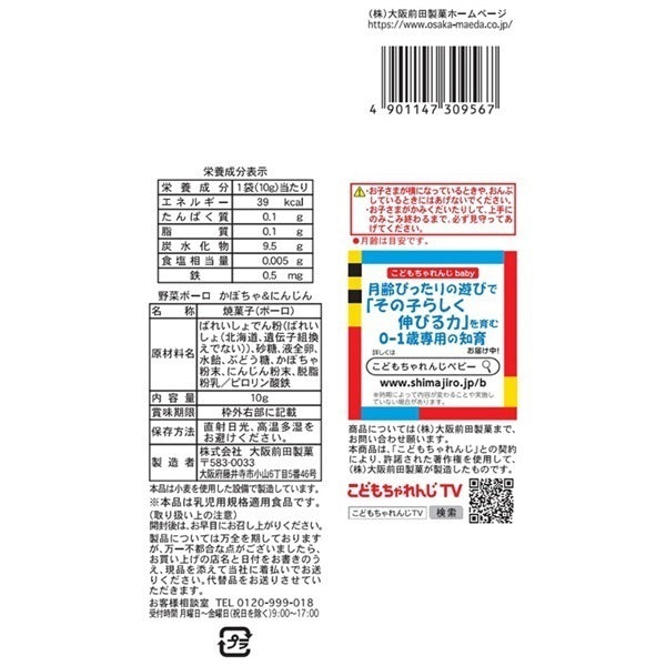 These are small biscuits made from a mix of pumpkin and carrots. Product contents: Potato starch (non-genetically modified), sugar, liquid whole egg, starch syrup, glucose, pumpkin powder, carrot powder, skim milk powder, iron pyrophosphate.